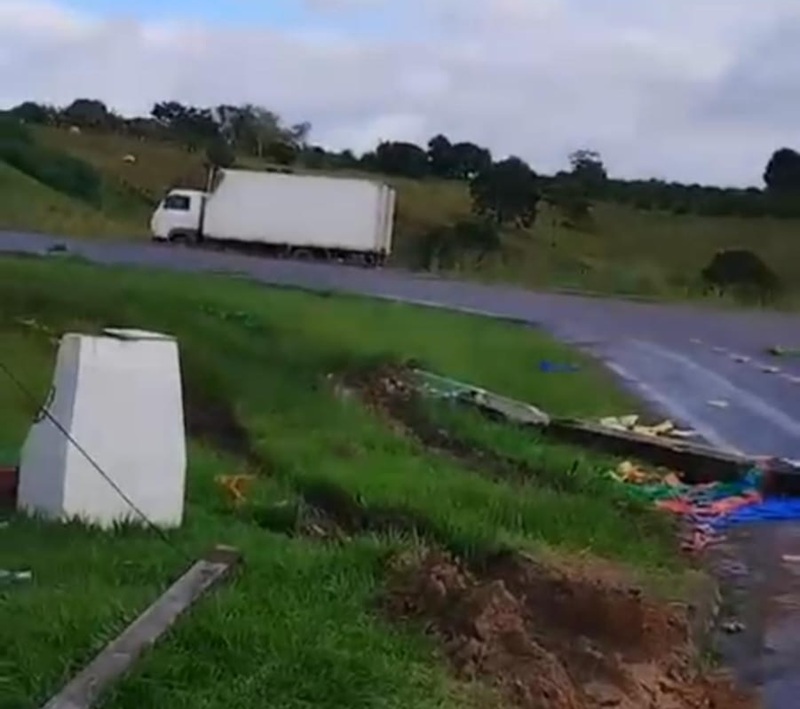 Segundo informações preliminares, o caminhão colidiu na traseira do carro de passeio. Com o impacto, o motorista do caminhão perdeu o controle da direção e acabou derrubando um poste de iluminação pública localizado no trevo.