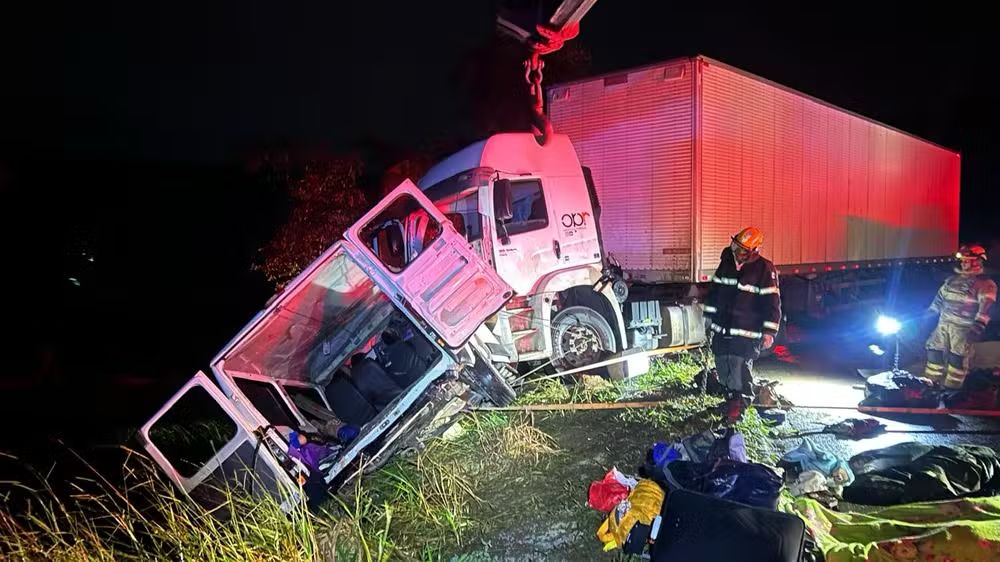 Um grave acidente envolvendo uma carreta e um micro-ônibus deixou nove mortos e dez feridos na noite desta terça-feira (13), na BR-251, no município de Grão Mogol, no Norte de Minas Gerais. A batida ocorreu no km 446 da rodovia, nas proximidades da comunidade de Barrocão.