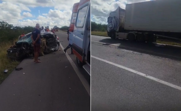 Acidente entre carro e carreta deixa uma pessoa morta e três feridas na BR-116, trecho entre os municípios de Milagres e Itatim