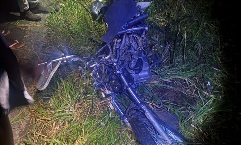 O acidente aconteceu na reta da Barra do Jaguaritu e deixou a motocicleta completamente destruída.