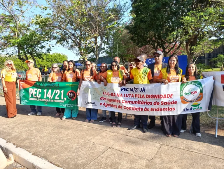 Mobilizados pelo Sindvale – Sindicato Intermunicipal dos Servidores Públicos do Vale do Jiquiriçá, os agentes comunitários de saúde e de combate às endemias da região foram a Brasília, para participar da mobilização pela aprovação da Proposta de Emenda à Constituição (PEC) 14/2021.