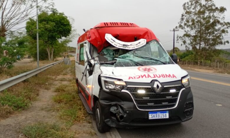 Ambulância do Serviço de Atendimento Móvel de Urgência (SAMU) de Brejões se envolve em acidente na BR-116; motorista e socorrista são socorridos
