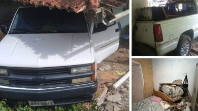Com a força da colisão, parte da estrutura do imóvel ficou danificada. Uma caminhonete caiu de uma ribanceira e atingiu…