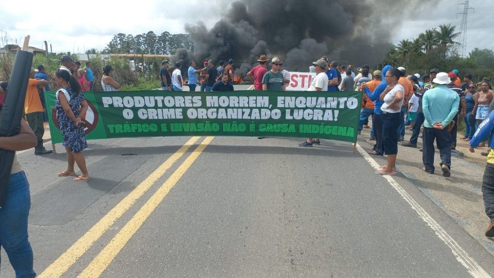 Uma manifestação de moradores da região do Extremo Sul da Bahia, (agricultores), cerca de 30 manifestantes, que reivindicam apuração de dois (02) homicídios (pai e filho) cometidos por indígenas bloqueia o trânsito na BR-101, nesta sexta-feira (31/10).