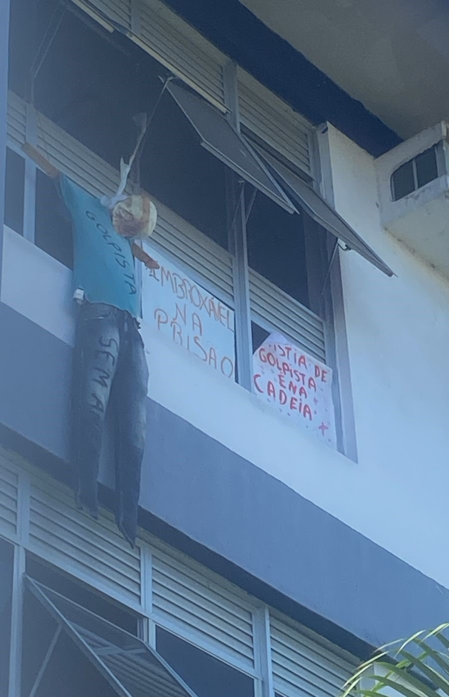 Um boneco representando o ex-presidente Jair Bolsonaro (PL) enforcado tem chamado atenção no campus V da Universidade do Estado da Bahia (UNEB), em Santo Antônio de Jesus. Segundo informações, o artefato está pendurado na janela de um dos prédios da instituição há pelo menos 25 dias.