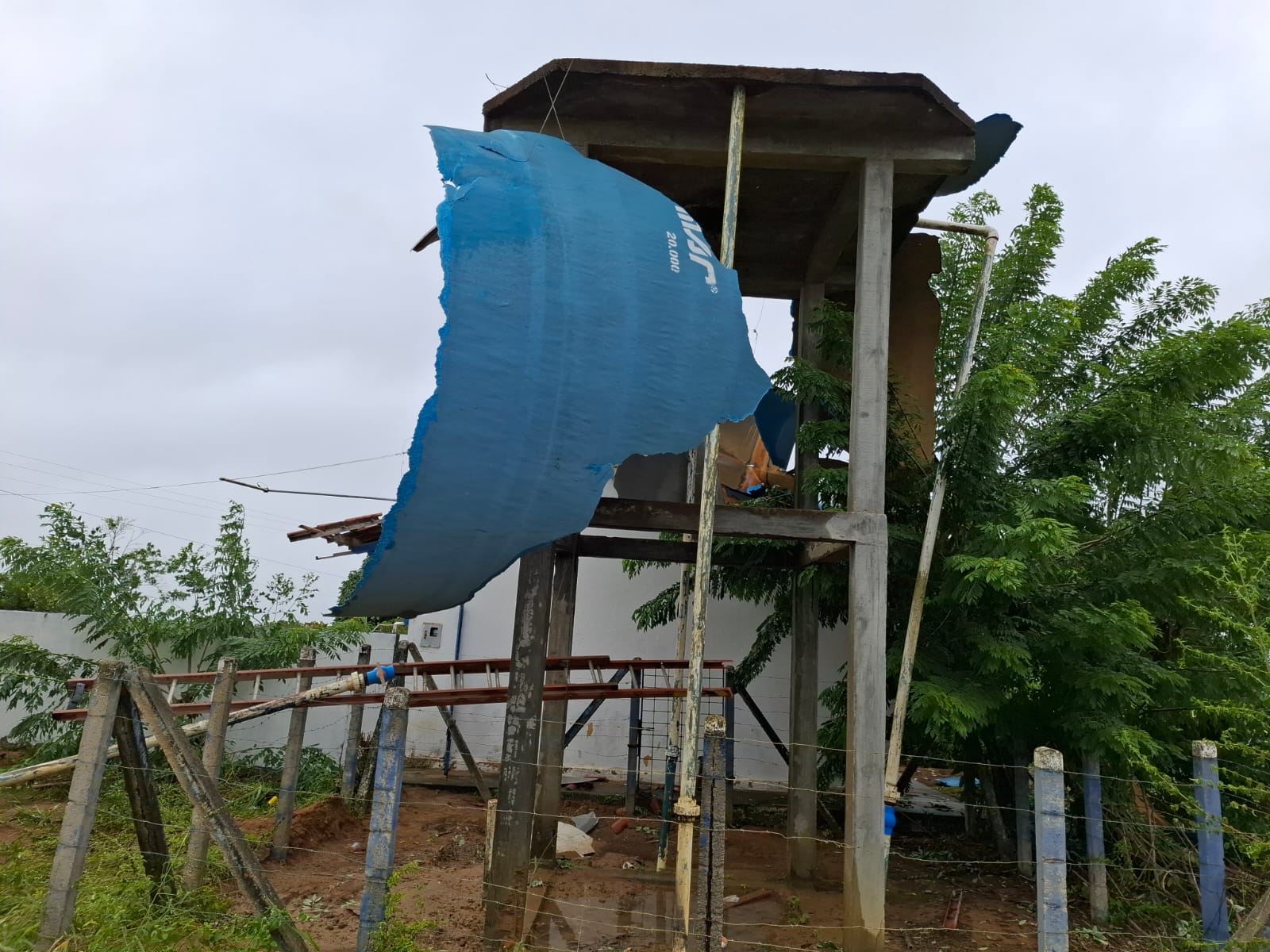 A água se espalhou por uma plantação de mandioca ao lado, e vários pés foram arrancado com a força da correnteza gerada pelo volume de água. Uma das salas ficou com bastante água proveniente da caixa.