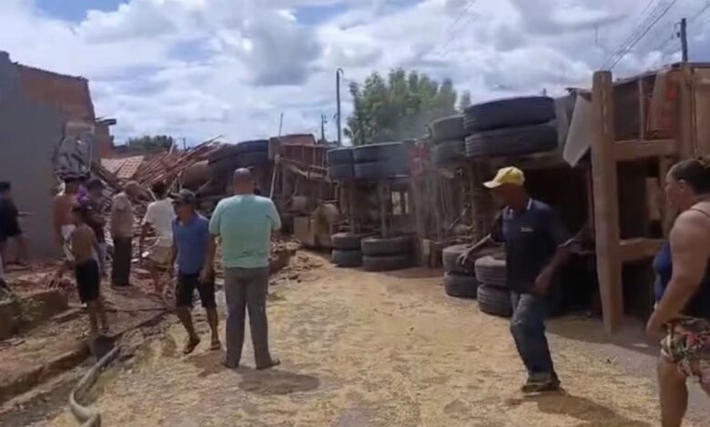Duas crianças ficaram feridas após uma carreta atingir três casas na tarde de segunda-feira (27/04), em São Desidério, no oeste da Bahia. O caso ocorreu na BA-463.