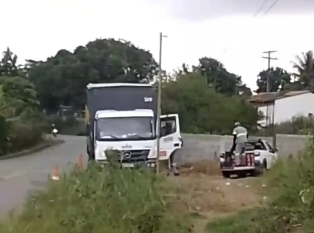 Um caminhão carregado com cerveja saiu da pista após o perder os freios na BA 026, próximo ao Entroncamento de Elísio Medrado na tarde desta segunda-feira (02), por pouco não causando mais um trágico acidente no local.