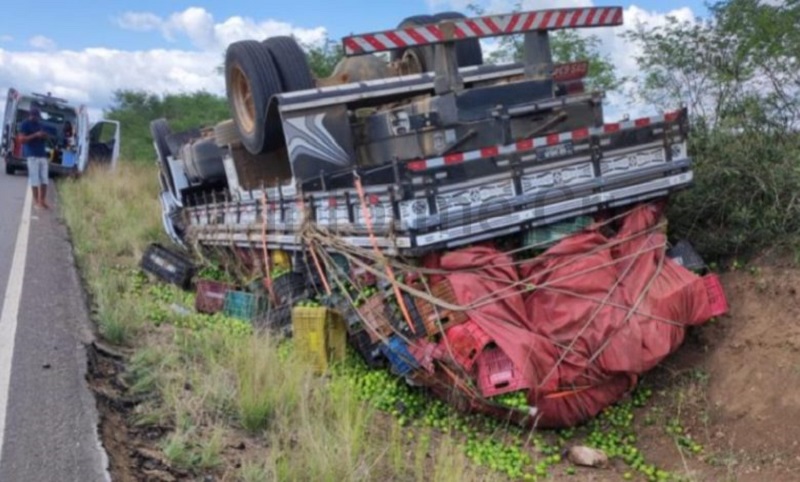 Segundo informações, o condutor do veículo de carga estava retornando para o município cruzalmense quando perdeu o controle da direção e acabou tombando as margens da rodovia.