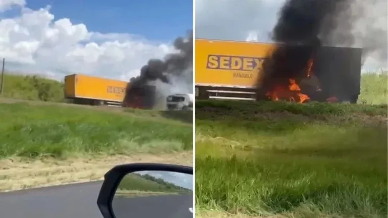 De acordo com informações iniciais, as chamas começaram na parte traseira da carreta por motivos ainda desconhecidos. Apesar do susto, não há registro de feridos.