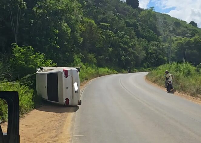 Carro perde freios e tomba na BR 420 em Jiquiriçá