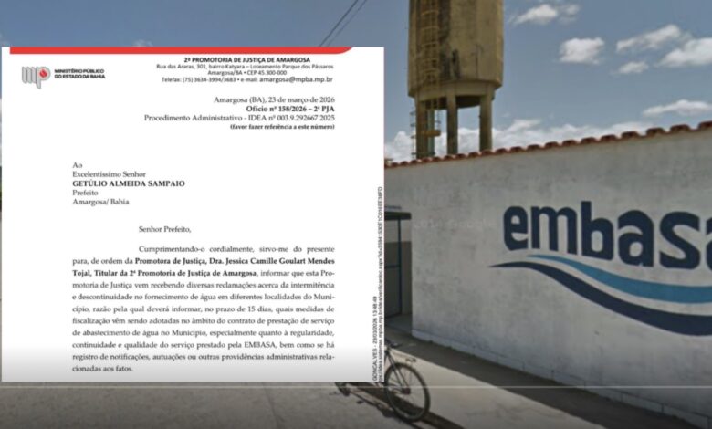 MP cobra posicionamento da prefeitura de Amargosa sobre serviços da EMBASA