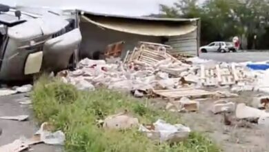 Caminhão carregado com frangos congelados tomba na BR 116, trecho de Brejões