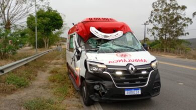 Ambulância do Serviço de Atendimento Móvel de Urgência (SAMU) de Brejões se envolve em acidente na BR-116; motorista e socorrista são socorridos