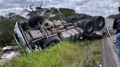 Ataque de abelhas faz motorista perder o controle, e tombar na BR-242, em Castro Alves