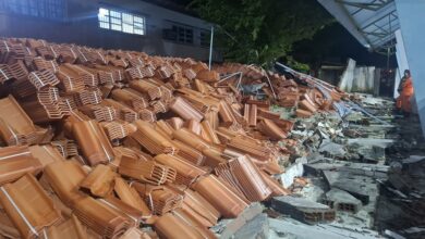 Muro que divide quadra esportiva com escola estadual desaba em Elísio Medrado e por pouco não causa tragédia