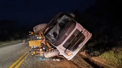 Caminhão tomba na BR-116 após se soltar de guincho na Serra do Mutum