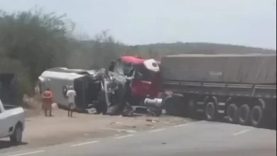 Motorista morre e 4 ficam feridos após colisão entre van que fazia linha Jaguaquara–Irajuba e caminhão na BR-116