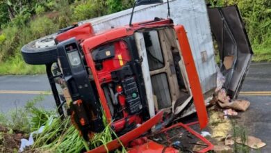 Caminhão tomba na Ladeira do Ribeirão na BA 540 entre Amargosa e Mutuípe