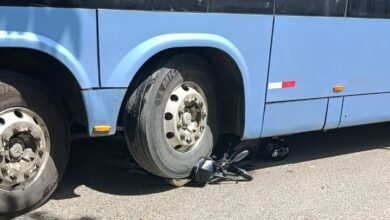 Motocicleta é arrastada por ônibus e fica destruída na Avenida Cosme Damião em SAJ