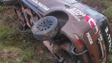Viatura da Rondesp Recôncavo capota e cai em vala na BA-001 na Ponte do Funil