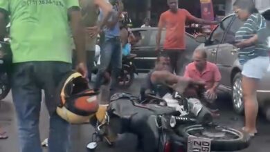Colisão envolvendo motocicleta e veículo deixa condutor ferido no centro de Amargosa