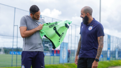 Das mãos de Danilo Fernandes, goleiro Ronaldo recebe a camisa número 1 do Bahia