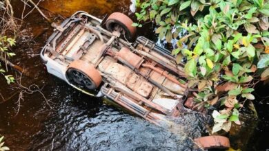 Caminhonete cai em rio ao passar por ponte na zona rural de Valença
