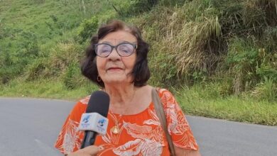 Com 91 anos de idade, dona Nair Brasil fala do sentimento de está participando da Caminhada da Bíblia em Elísio Medrado