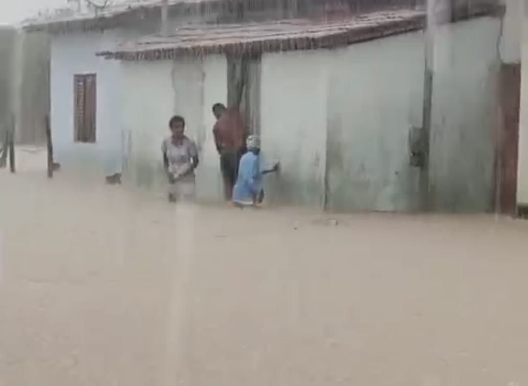 Moradores registraram imagens de vias tomadas pela água após horas de chuva intensa. Em alguns bairros, a enxurrada invadiu casas e estabelecimentos comerciais, causando prejuízos materiais. A falta de drenagem adequada e o acúmulo de lixo em bueiros agravaram a situação.