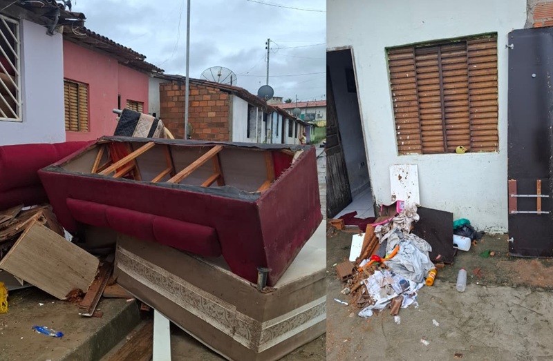 Nas Casas Populares, local que situação semelhante já ocorreu por duas vezes, todos os bens perdidos estavam sendo retirados de dentro das residências por moradores e sendo levado por caçambas da prefeitura direto para o lixo.
