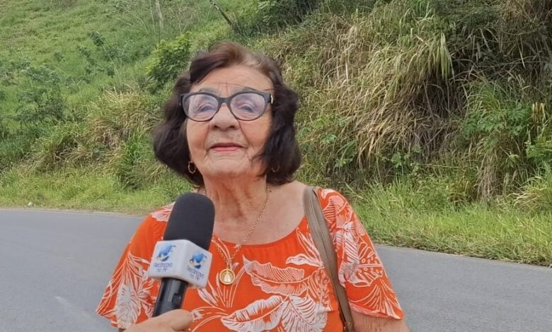 Com 91 anos de idade, dona Nair Brasil fala do sentimento de está participando da Caminhada da Bíblia em Elísio Medrado