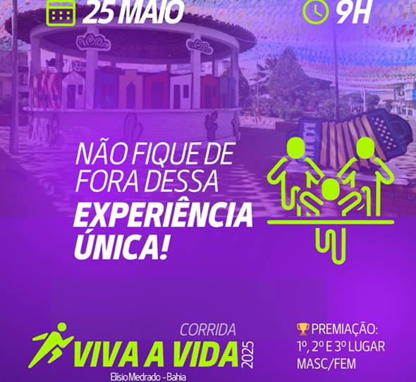 A cidade de Elísio Medrado será palco da 1ª Corrida Viva Vida no próximo domingo (25), que tem como propósito promover a integração entre gerações, incentivando a prática esportiva, o fortalecimento dos vínculos familiares e