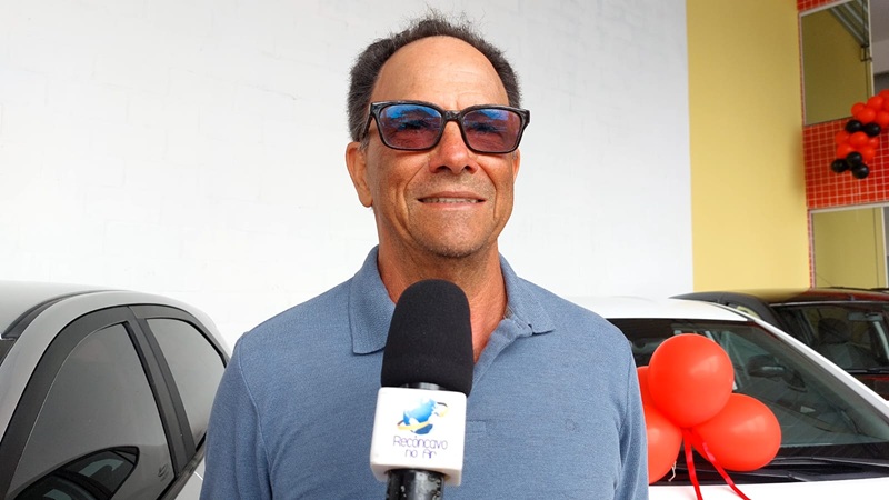 Durante entrevista ao Recôncavo no Ar, Dandãe expressou sua alegria em participar da inauguração da Primos Car, novo empreendimento do setor automotivo que acaba de ser instalado em Elísio Medrado.