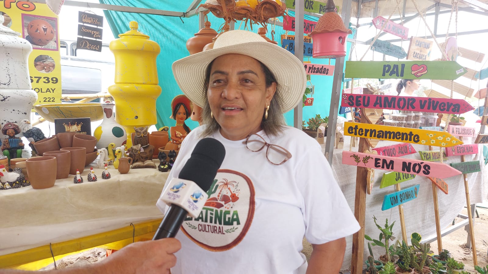 A artesã também destacou que a comercialização das peças tem ganhado mais visibilidade graças ao Caatinga Cultural, que oferece espaço para exposição, vendas e fortalecimento das cadeias produtivas locais.