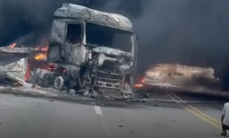 De acordo com informações preliminares, a colisão envolveu vários veículos, incluindo uma carreta que pegou fogo após o impacto. As chamas se espalharam rapidamente e atingiram outros automóveis que trafegavam pela via.