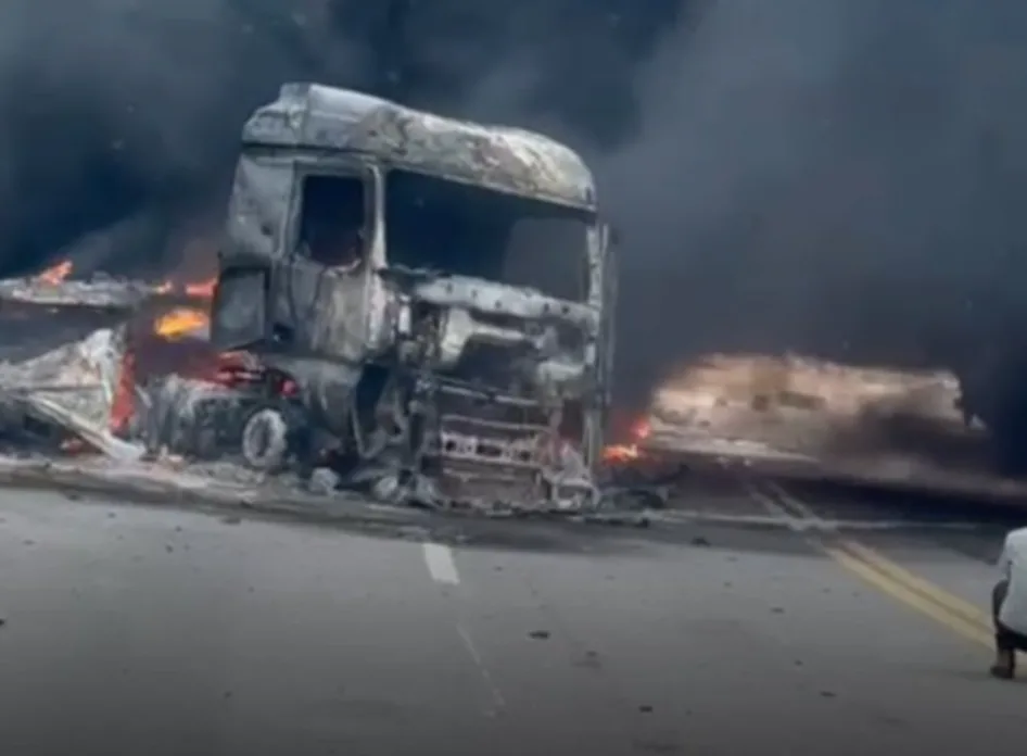 De acordo com informações preliminares, a colisão envolveu vários veículos, incluindo uma carreta que pegou fogo após o impacto. As chamas se espalharam rapidamente e atingiram outros automóveis que trafegavam pela via.