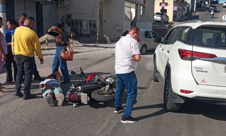 Uma colisão entre uma motocicleta e um carro foi registrada na tarde desta quinta-feira (7) na rotatória da Rua Aracaju, em Santo Antônio de Jesus. Segundo informações de testemunhas, não houve vítimas graves.