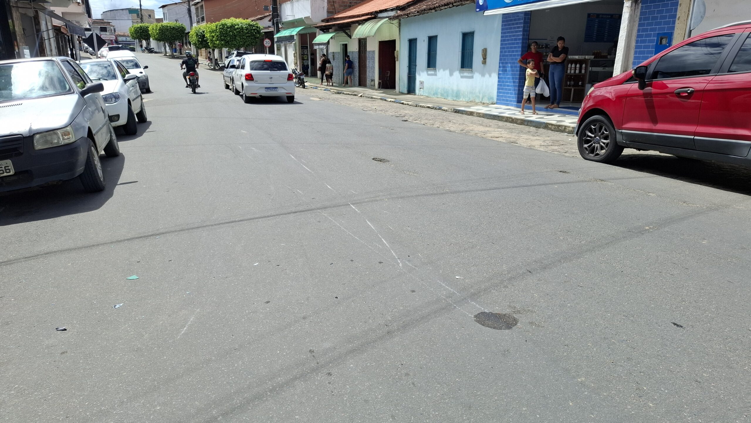 O condutor de uma motocicleta perdeu o controle da direção após a motocicleta “voar” sobre um quebra-molas na rua XV de Novembro em Elísio Medrado na manhã deste sábado (25).