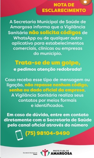 Golpistas se passam por Vigilância Sanitária em Amargosa e tentam enganar clínicas; órgão emite nota de esclarecimento