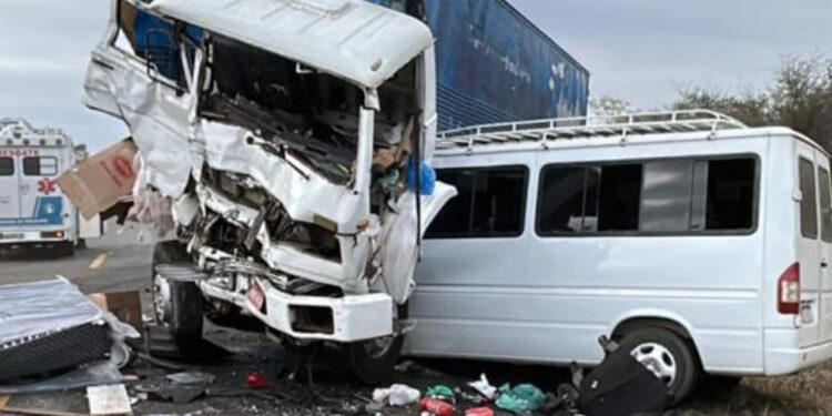 Motorista morre e 4 ficam feridos após colisão entre van que fazia linha Jaguaquara–Irajuba e caminhão na BR-116