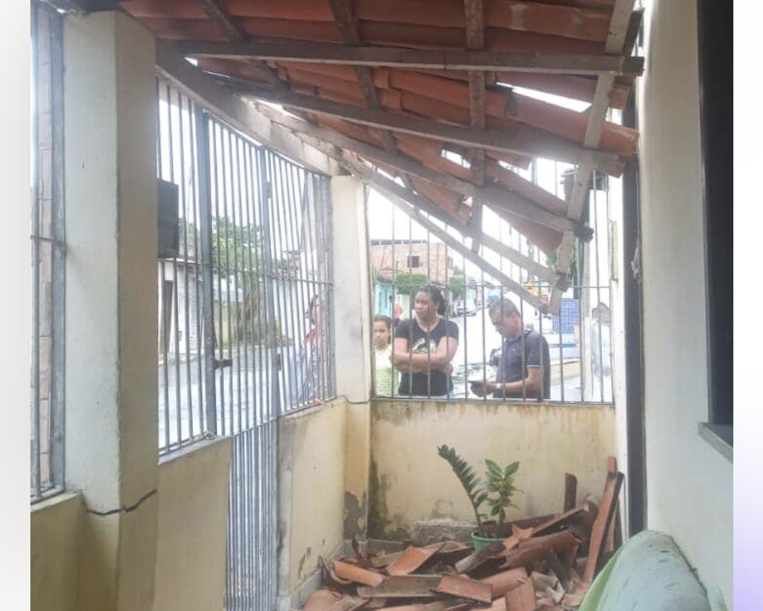 Telhas e madeiras foram quebradas.