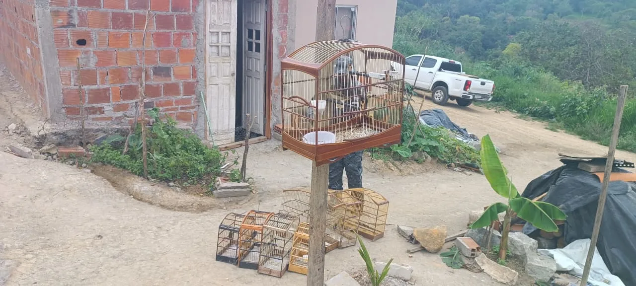 Durante a fiscalização, foram encontradas 17 aves de espécies variadas da fauna brasileira, mantidas em cativeiro de forma irregular, além de 17 gaiolas e armadilhas (alçapões) utilizadas na captura dos animais.