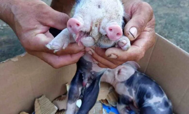 Porco nasce com duas cabeças em comunidade rural de Feira de Santana
