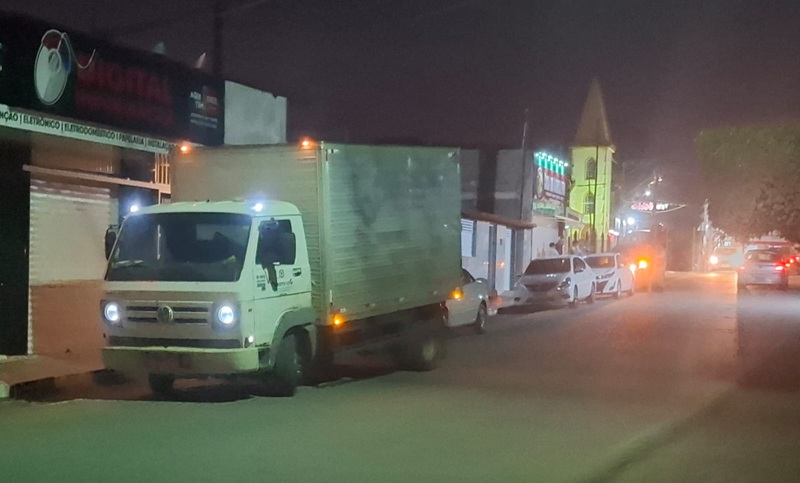 Um veículo estacionado foi atingido pela porta de um caminhão bau que passava pela rua XV de Novembro em Elísio Medrado na noite desta terça-feira (22), ficando com um grande buraco na chaparia traseira e arranhões.