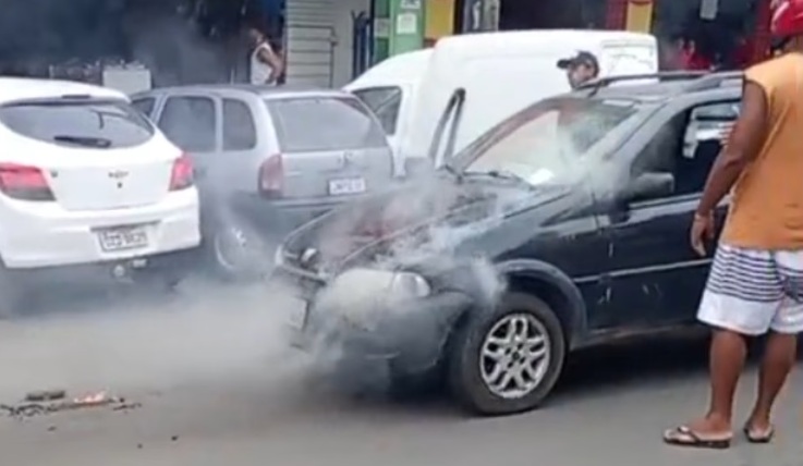 Um carro pegou fogo nas proximidades da Praça Duque de Caxias, na feira livre de Santo Antônio de Jesus, na manhã desta segunda-feira (26). As chamas atingiram a parte frontal do veículo e geraram intensa fumaça, que chamou a atenção de quem passava pelo local.