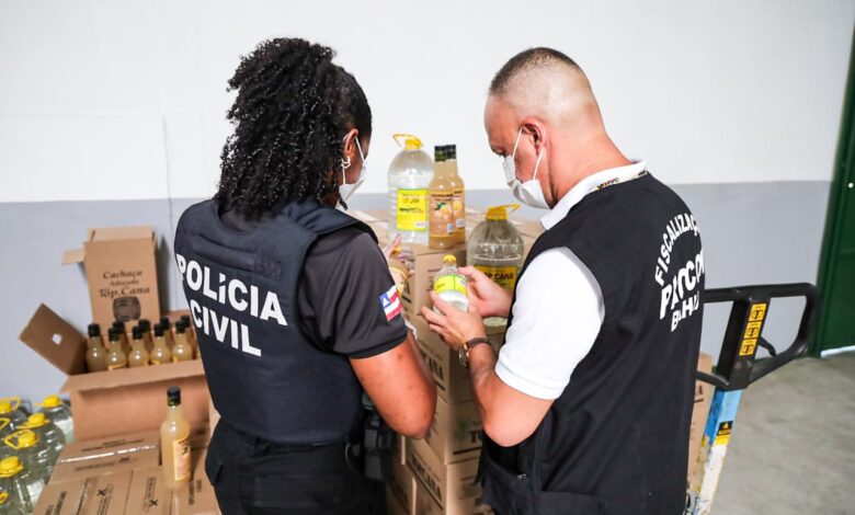 Em Periperi, no bairro Nova Constituinte, a fiscalização identificou 24 garrafas de uísque supostamente falsificado, além de lacres, tampas, plásticos e rótulos utilizados na adulteração. O responsável pelo local foi conduzido à Delegacia de Defesa do Consumidor (Decon), e os produtos foram encaminhados ao DPT para perícia de autenticidade.