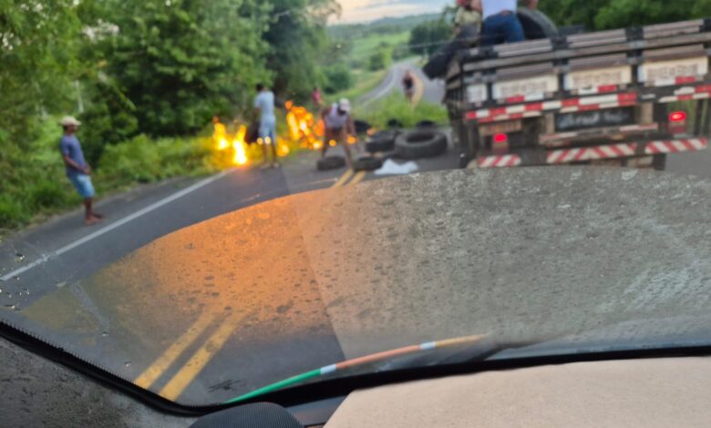 Manifestantes bloquearam rodovia com pneus em chamas para cobrar a regulação de um paciente.