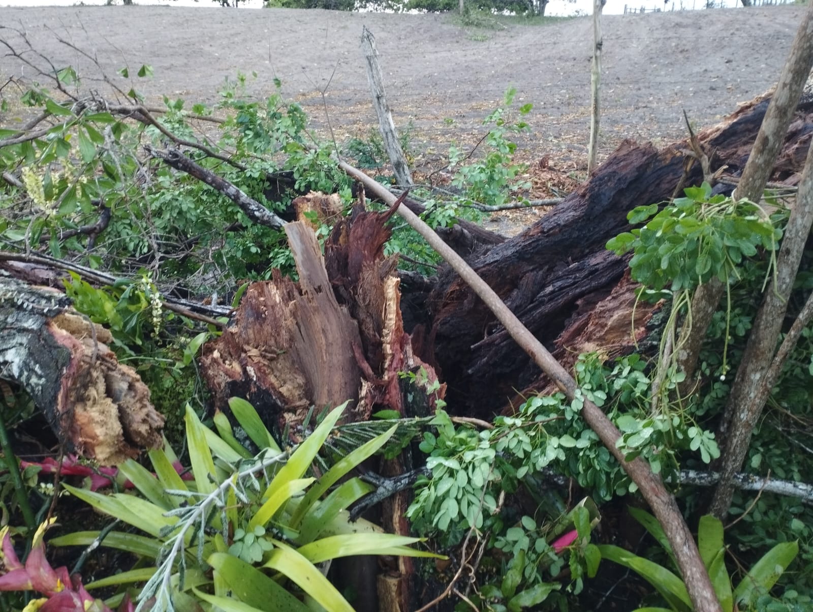 O famoso pé de Pau Ferro no bar Pau do Chico na localidade do Campo Alegre, zona rural de Santa Terezinha foi ao chão com os fortes ventos da tarde deste sábado (03).