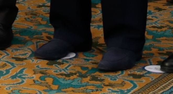 Apesar da dúvida, ao ampliar uma das fotos oficiais da Presidência é possível confirmar que o ministro não estava descalço.
